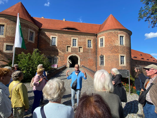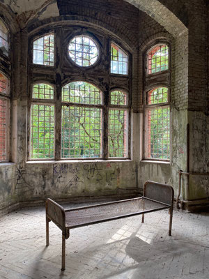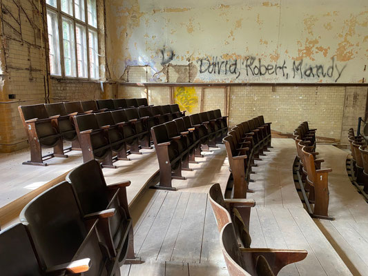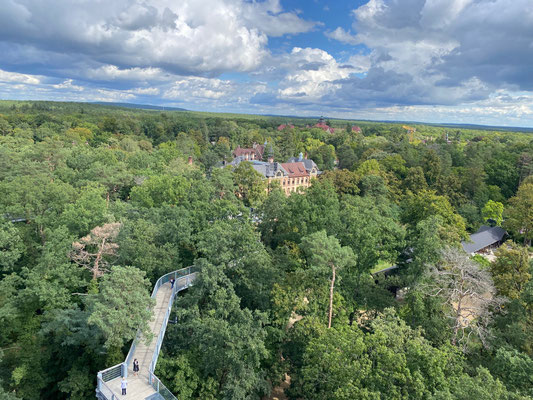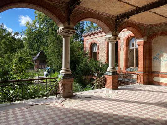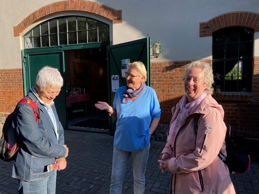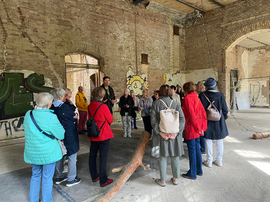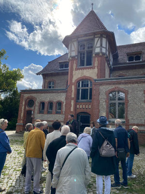 Faszinierend, unsere Zeitreise nach Beelitz-Heilstätten, in die einstmals größte Lungenheilstätte Europas. Hochmodern ging es ab 1900 hier zu, an Tuberkulose erkrankte Berliner Arbeiterinnen und Arbeiter sollten mit Liegekuren und guter Ernährung wieder flottgemacht werden. Nach jahrelangem Leerstand verströmen die Gebäude heute einen morbiden Lost-Place-Charme. Unsere Führung ging durch das Frauen-Bettenhaus mit Badesaal, das Waschhaus und die Kochküche; vom Baumwipfelpfad aus beeindruckt vor allem das Alpenhaus mitsamt darin und darauf wachsendem Wald. Anschließend ging's nach Bad Belzig mit der Burg Eisenhardt und einer hübschen Altstadt, zu einem anderen Gebäude, das lange leer stand: Die Kabarettistin Gerlinde Kempendorff hat das ehemalige Elektrizitätswerk in ein "Kleinkunstwerk" umgewandelt und berichtete uns bei Kaffee und Kuchen von ihrem Lebenswerk.